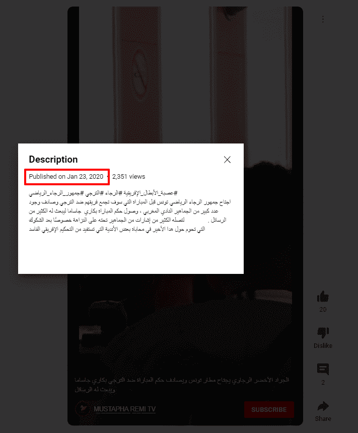 إلى أن المقطع متداول منذ عام 2020، حيث نشرته قناة باسم “M͟U͟S͟T͟A͟P͟H͟A͟ R͟E͟M͟I͟ T͟V͟” بتاريخ 23 يناير 2020 على أنه لجماهير الرجاء في تونس تحت عنوان: