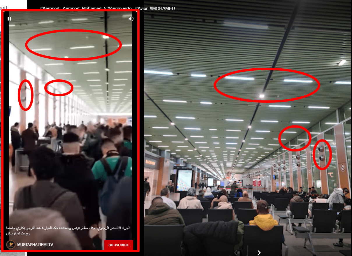 وبمتابعة البحث تمكنا من مطابقة معالم المطار الظاهر في مقطع الادعاء مع مطار محمد الخامس في مدينة الدار البيضاء في المغرب،