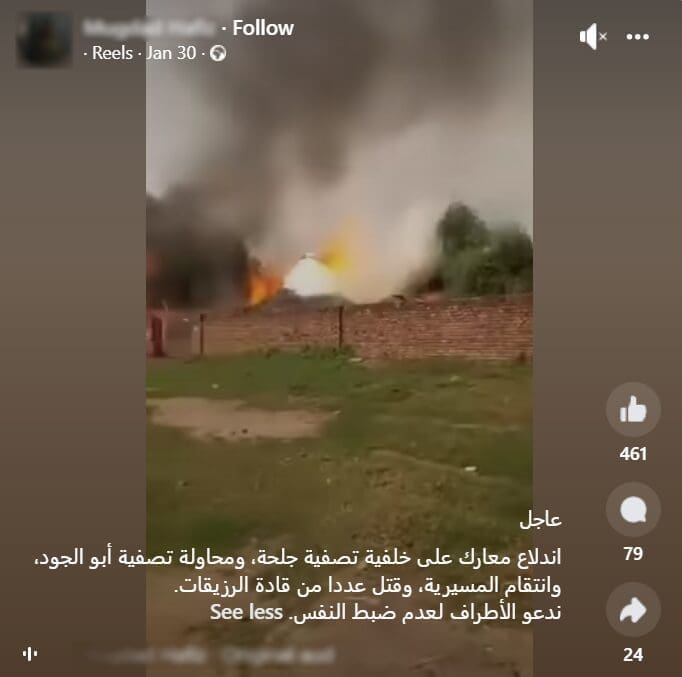 هذا المقطع يصور اشتباكات قبلية عام 2023، ولا يصور معارك بين الجيش السوداني وقوات الدعم السريع إثر مقتل جلحة مؤخرًا