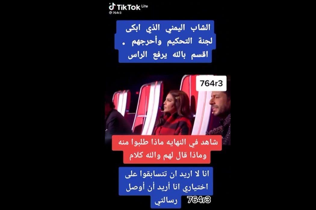 يتناقل روّاد مواقع التواصل الاجتماعي مقطع فيديو يزعم ناشروه أنه لشاب يمني أبكى، وأحرج لجنة تحكيم برنامج ذا فويس في نسخته العربية.