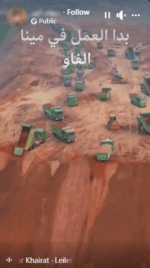 إثر ذلك تداول ناشطون على موقع الفيسبوك مقطع فيديو يدّعي ناشروه أنه يظهر عددًا كبيرًا من الآليات بدأت العمل في ميناء الفاو.