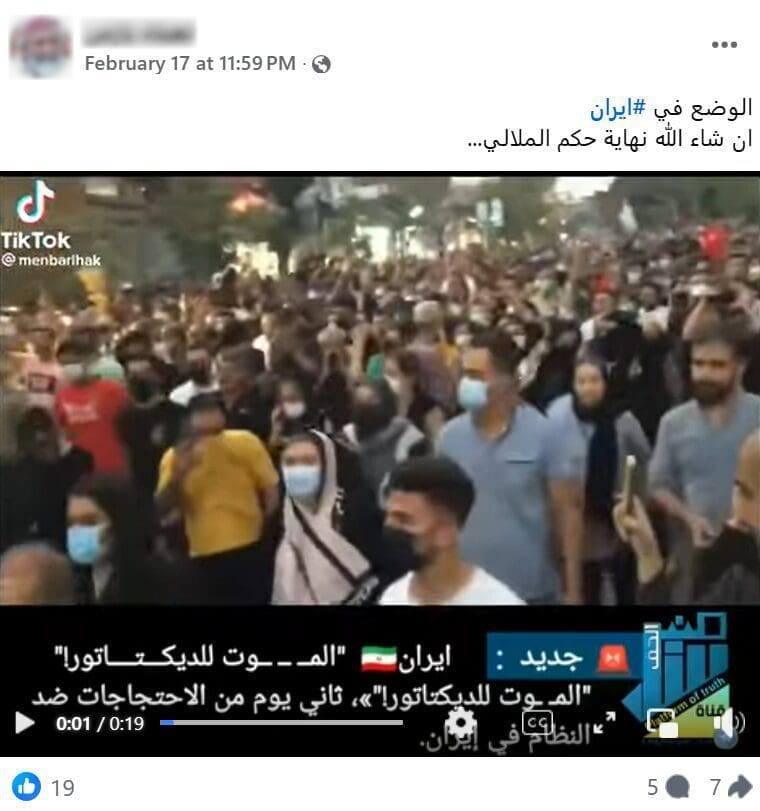 هذا المقطع يصور احتجاجات إثر مقتل مهسا أميني عام 2022، ولا يصور احتجاجات في إيران مؤخرًا