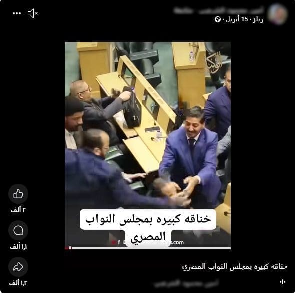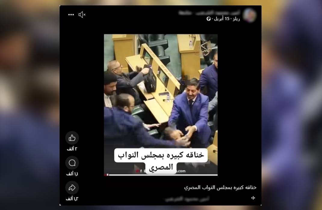 هذا المقطع لا يصور عراكًا في مجلس النواب المصري، بل يعود إلى مشاجرة في مجلس النواب الأردني عام 2021