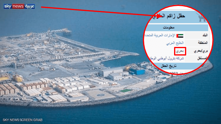 حقل زاكوم العلوي الإماراتي هو حقل نفط بحري وليس بري وهو ثاني أكبر حقل نفط بحري في العالم ويمكننا ملاحظة بأن صور الادعاء المنتشرة في مواقع التواصل الاجتماعي ليست حقول بحرية