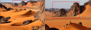 مطابقة صورة المرفقة بالادعاء لصحراء الجزائر – إلى اليمين – مع صورة أخرى من صحراء الجزائر – منطقة طاسيلي