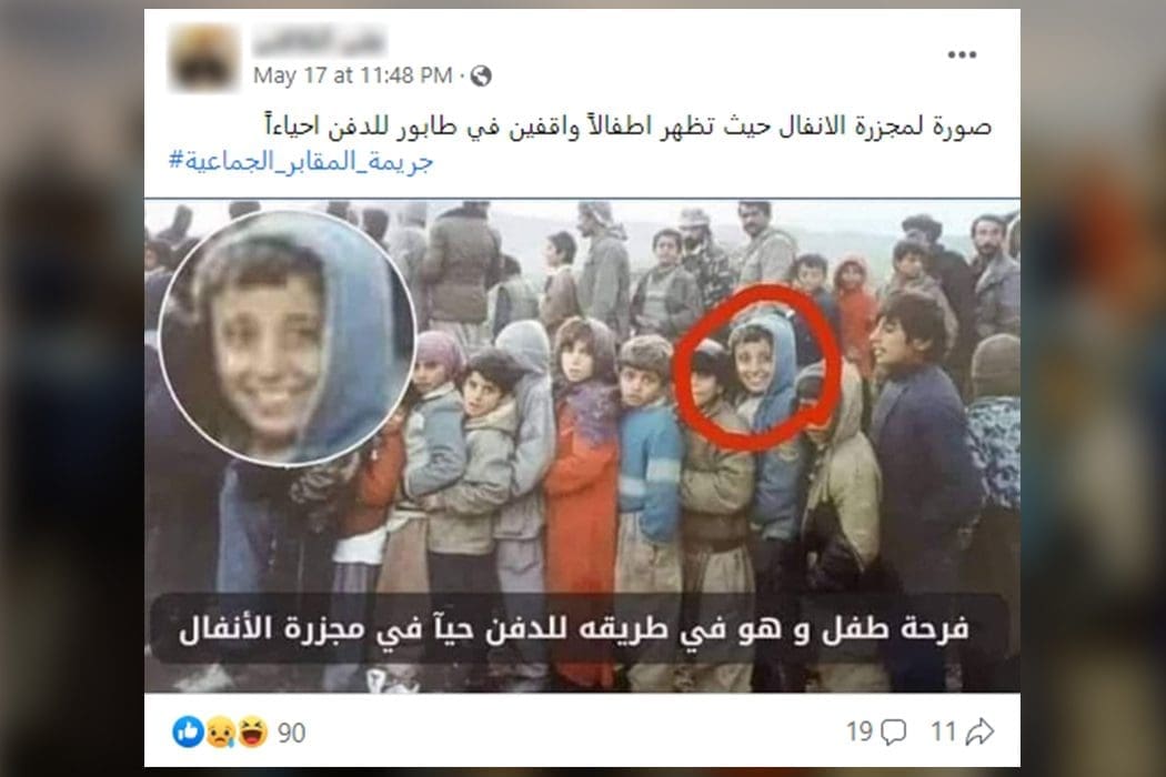 تناقل ناشطون على الفيسبوك صورة يدّعي ناشروها أنها تظهر أطفالًا ينتظرون في طابور للدفن أحياءً في حملة الأنفال.