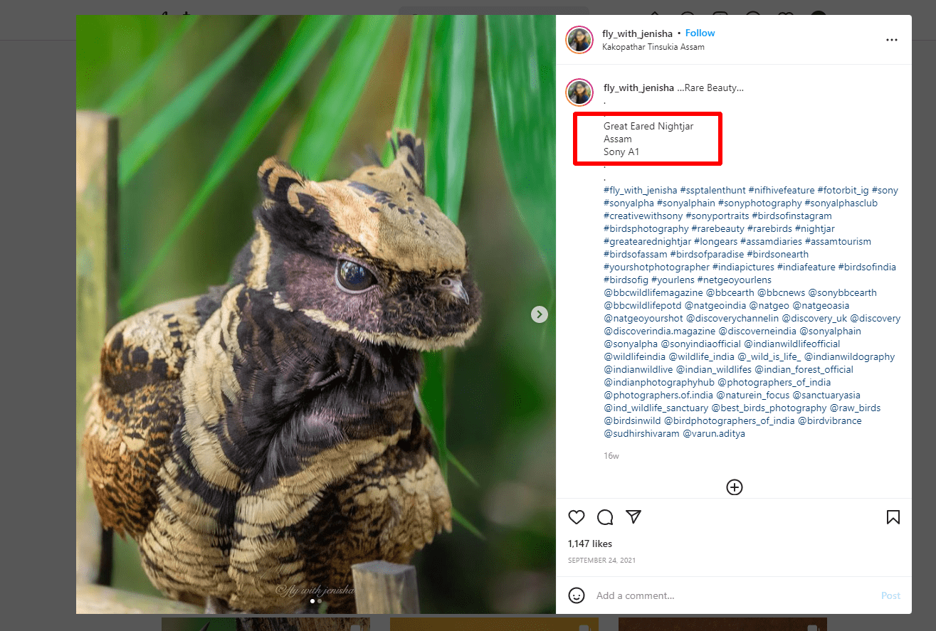 بالرجوع إلى حساب الانستغرام السابق تبين أنه يعود لمصورة فوتوغرافية تدعى “Jenisha Aggarwal” تعرف عن نفسها أنها مصورة للطبيعة والحياة البرية،
