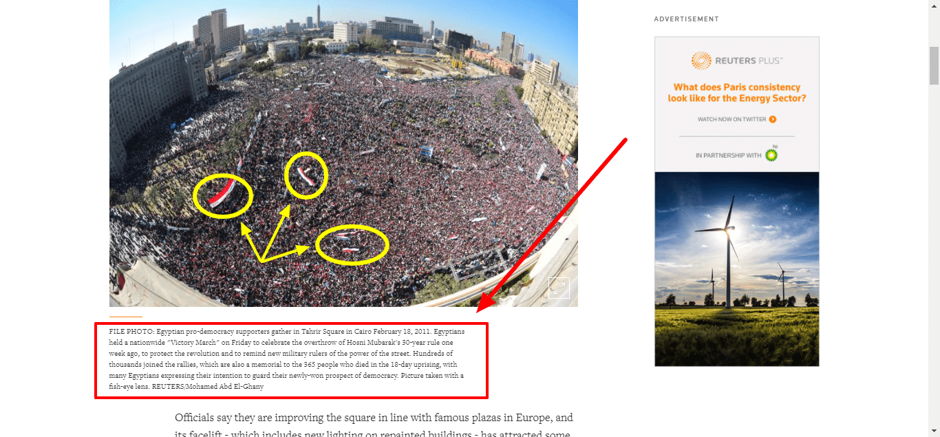 عثر فريق منصة فتبينوا على صورة الادعاء ذاتها في موقع وكالة الانباء رويترز “reuters” الذي نشرها ضمن مقال بعنوان: ميدان التحرير في القاهرة يشهد تغيرات مثيرة للجدل.