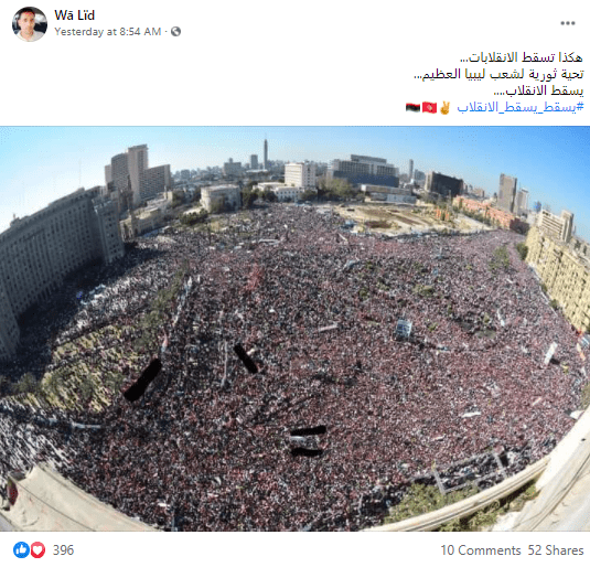 انتشرت على موقع التواصل الاجتماعي فيسبوك صورة تظهر حشد كبير من المتظاهرين ويزعم ناشروها أنها تعود إلى ليبيا، فما حقيقة هذه الصورة؟