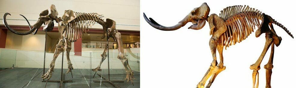 كذلك، تظهر الصورة الآتية لقطات شاشة من متحف علم الحفريات التابع لجامعة كاليفورنيا (يمين)، ومن جامعة ولاية كاليفورنيا في فوليرتون (يسار)، لأحافير ماموث تم اكتشافها سابقاً، والتي تظهر بشكل مختلف عن الصورة في الادعاء.