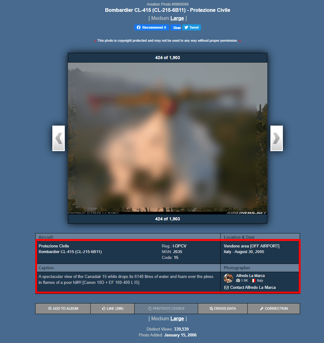 عثر فريق منصة فتبينوا على صورة الادعاء ذاتها في موقع airliners، تم رفعها على الموقع بتاريخ 15 يناير 2006