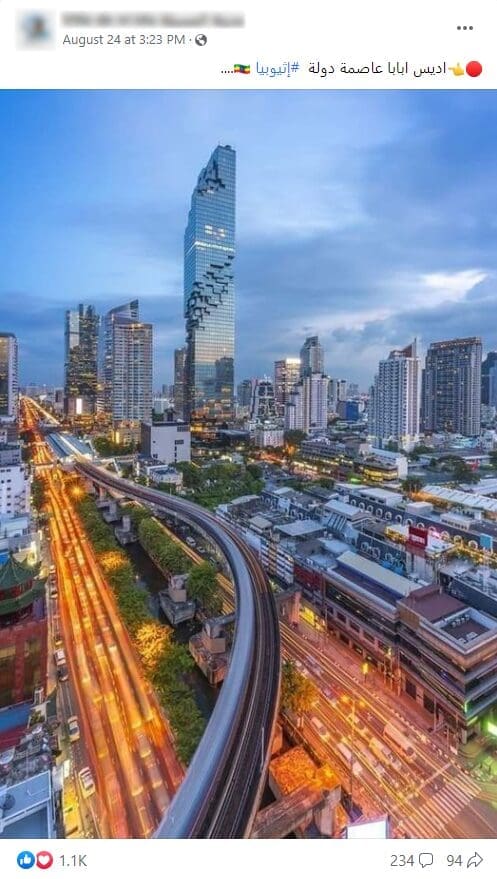 هذه الصورة لا تظهر أديس أبابا عاصمة دولة إثيوبيا، بل بانكوك عاصمة تايلاند