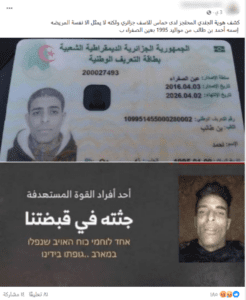 في أعقاب ذلك، تناقل ناشطون على فيسبوك صورة بطاقة تعريف وطنية لمواطن جزائري يدعون أنها تعود لجنديّ أعلنت حماس أسره في غزة حديثًا،
