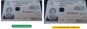 مما يؤكد أن صورة الادعاء ما هي إلا صورة اقتبست من إعلان فقدان بطاقة تعريف وطنية في الجزائر،