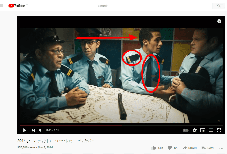 ويظهر كذلك في إعلان فيلم ” واحد صعيدي ” على اليوتيوب وهو يرتدي الملابس ذاتها الظاهرة في صورة الادعاء.