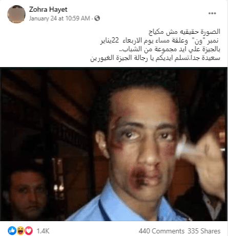 وادعى ناشرو الصورة بأنها حديثة وحقيقية وتدل على تعرض الممثل للضرب في محافظة الجيزة المصرية.