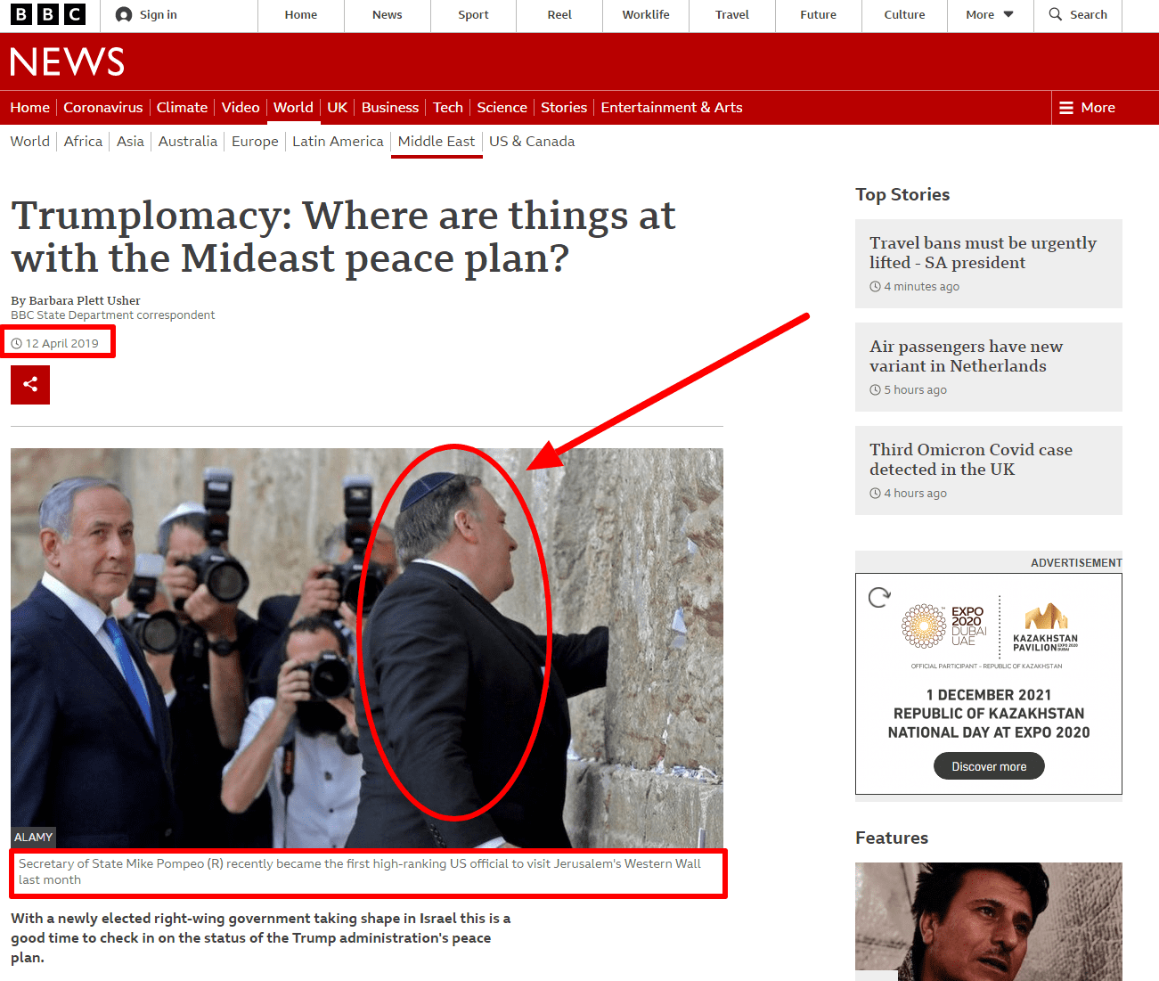 تعود الصورة الأصلية لوزير الخارجية الأمريكي مايك بومبيو للبلدة القديمة بالقدس 21 مارس 2019،