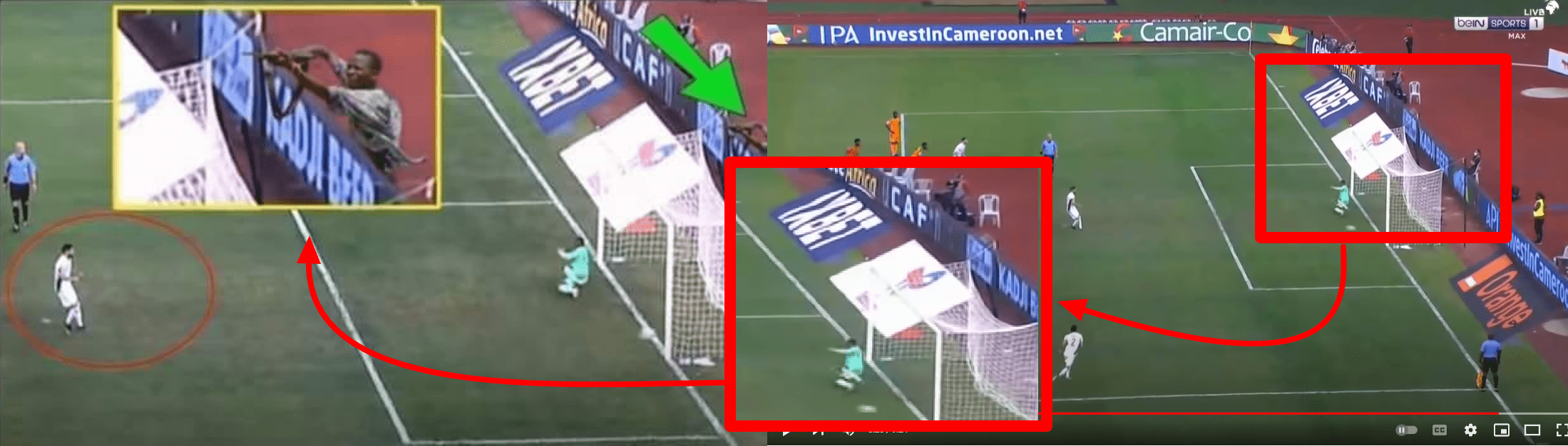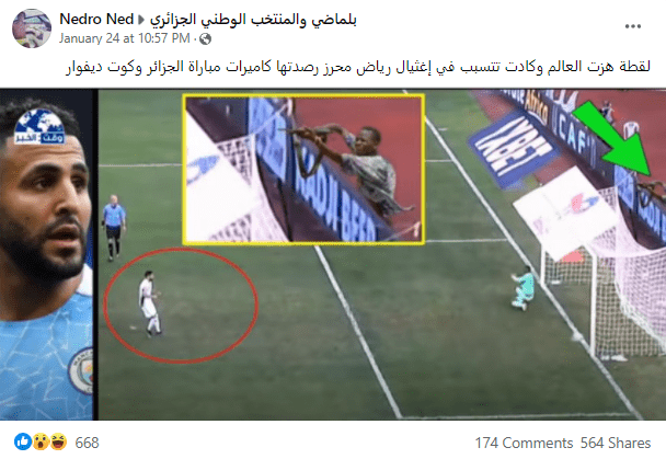 إثر ذلك تداول نشطاء مواقع التواصل الاجتماعي صورة تظهر رجلا مسلحا وراء مرمى منتخب ساحل العاج اثناء اجراء اللاعب الجزائري رياض محرز ركلة مرمى،