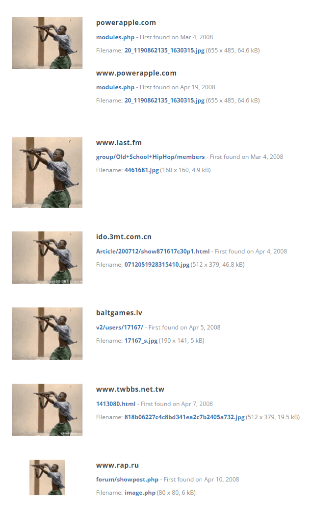 فيما أرشد البحث العكسي عن صورة الرجل المسلح إلى العديد من النتائج على محركات البحث وهي متداولة من قبل مباراة الجزائر وساحل العاج،