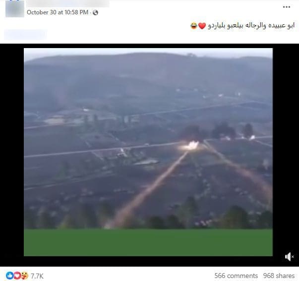 نشرت إحدى صفحات فيسبوك الادعاء بتاريخ 30 أكتوبر محققاً أكثر من 7.6 آلاف تفاعل، ونحو 968 مشاركة،