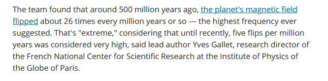 – انقلاب المجال المغناطيسي لن يكون الأوّل فقد حدثت عدّة انقلابات خلال تاريخ الأرض